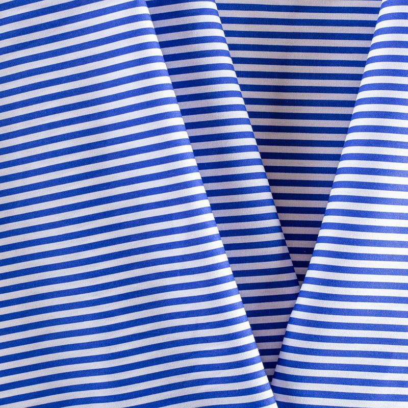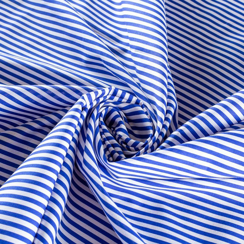 Плательно-блузочная ткань из натурального хлопка в вертикальную синюю полоску. Ткань легкая, тонкая, хорошо "дышит", мягкая, не прозрачная. Подойдет для пошива летнего платья, летящей юбки, блузы, сарафана, комбинезона или рубашки.
