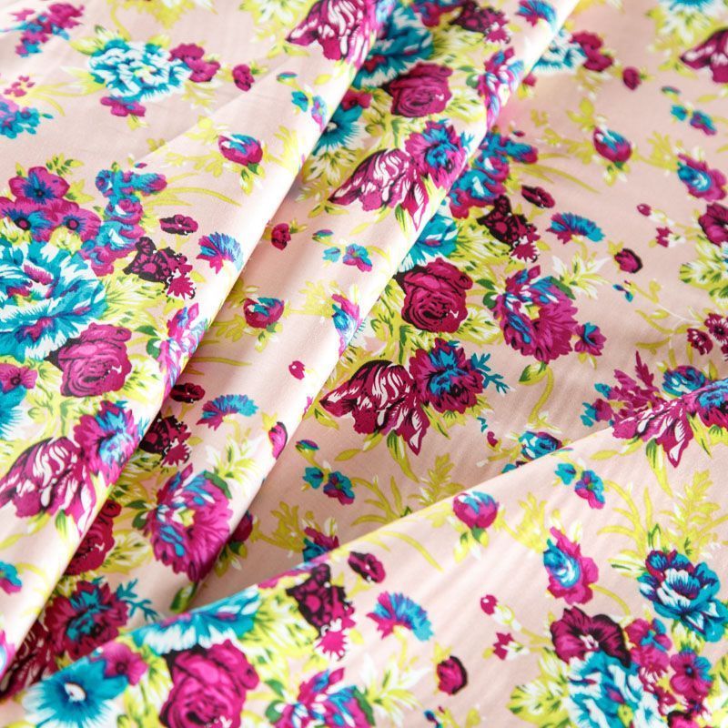 Плательно-рубашечная ткань из натурального хлопка с ярким цветочным принтом. Ткань легкая, тонкая, хорошо "дышит", слегка держит форму, не сухая, не прозрачная. Подойдет для пошива летнего платья, летящей юбки, блузы, сарафана, комбинезона или рубашки, а также для домашней одежды.