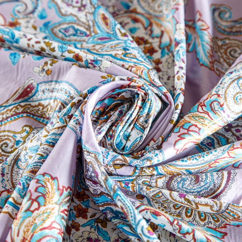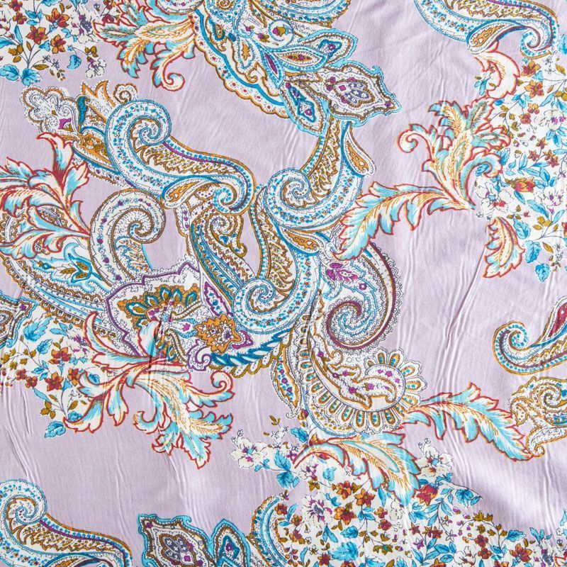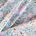Плательно-рубашечная ткань из натурального хлопка с узором пейсли. Ткань легкая, тонкая, хорошо "дышит", слегка держит форму, не сухая, не прозрачная. Подойдет для пошива летнего платья, летящей юбки, блузы, сарафана, комбинезона или рубашки, а также для домашней одежды.
