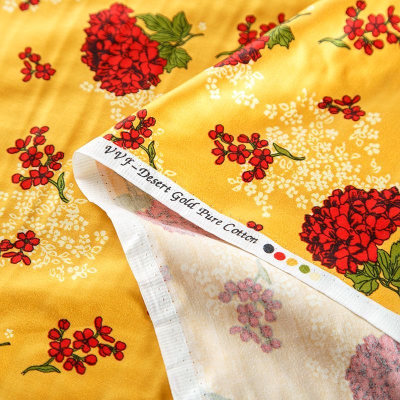 Плательно-рубашечная ткань из натурального хлопка с ярким цветочным принтом. Ткань легкая, тонкая, хорошо "дышит", слегка держит форму, не сухая, не прозрачная. Подойдет для пошива летнего платья, летящей юбки, блузы, сарафана, комбинезона или рубашки, а также для домашней одежды.