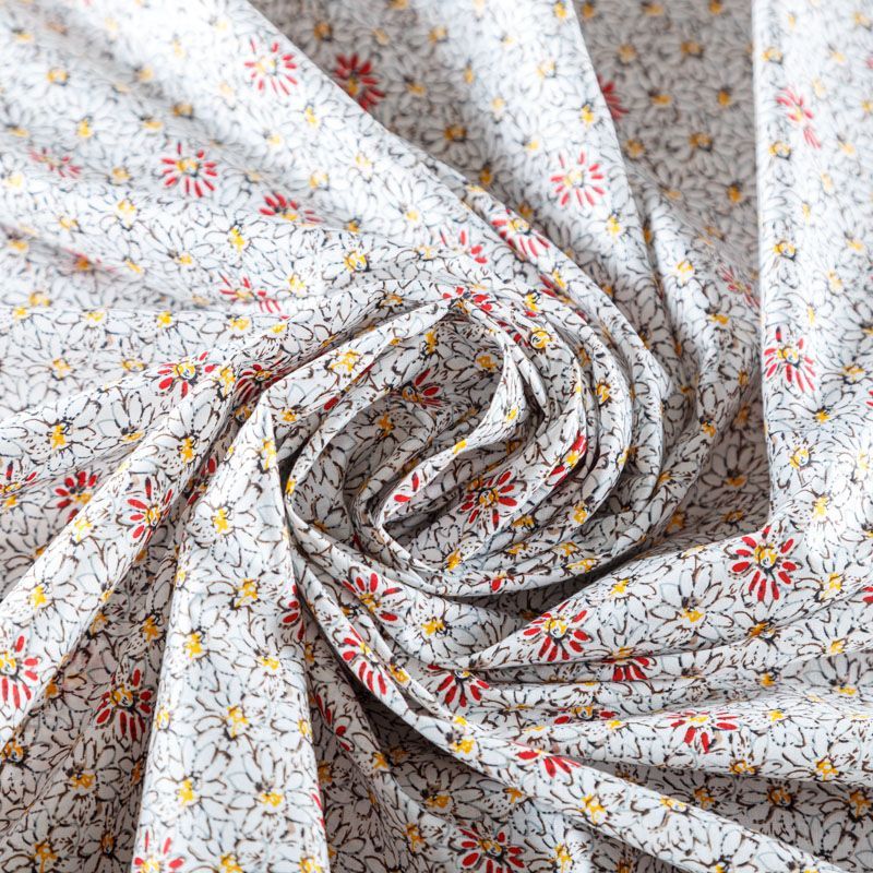 Натуральный хлопок с мелкоцветным принтом. Ткань легкая, тонкая, хорошо "дышит", мягкая, слегка прозрачная, тянется за счет эластана в составе. Подойдет для пошива летнего платья, домашней одежды, детских платьев, песочников, юбки, сарафана или рубашки, а также для для пошива постельных принадлежностей, подушек, покрывал, скрапбукинга, корзин и других видов творчества.