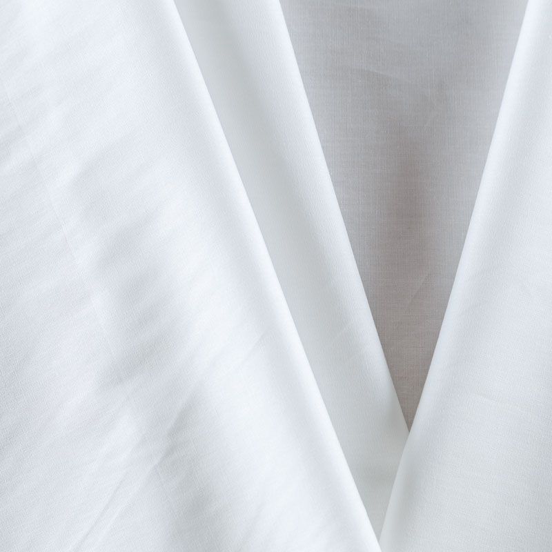 Итальянский плательно-рубашечный натуральный хлопок с эластаном в белоснежном оттенке. Ткань имеет плотное переплетение, матовую гладкую поверхность, хорошо держит форму, слегка прозрачная. Подойдет для пошива рубашек, платья-рубашки, юбки, сарафана, туники, топа, домашней одежды.