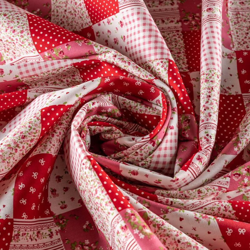 Ткань из натурального хлопка с рисунком в виде сшитых между собой разных лоскутков (печворк). Размер клетки 5*5 см. Ткань легкая, хорошо "дышит", мягкая, слегка прозрачная. Подойдет для пошива белья, рукоделия, печворка, изготовления предметов интерьера.