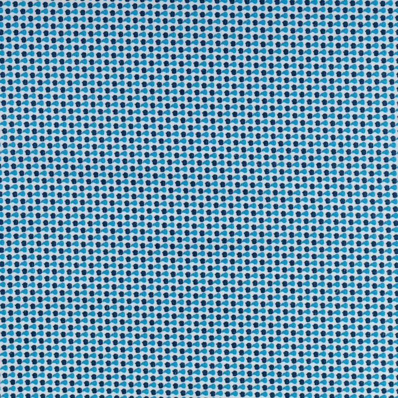 На белом фоне мелкий геометрический рисунок синего и лазурного цвета.