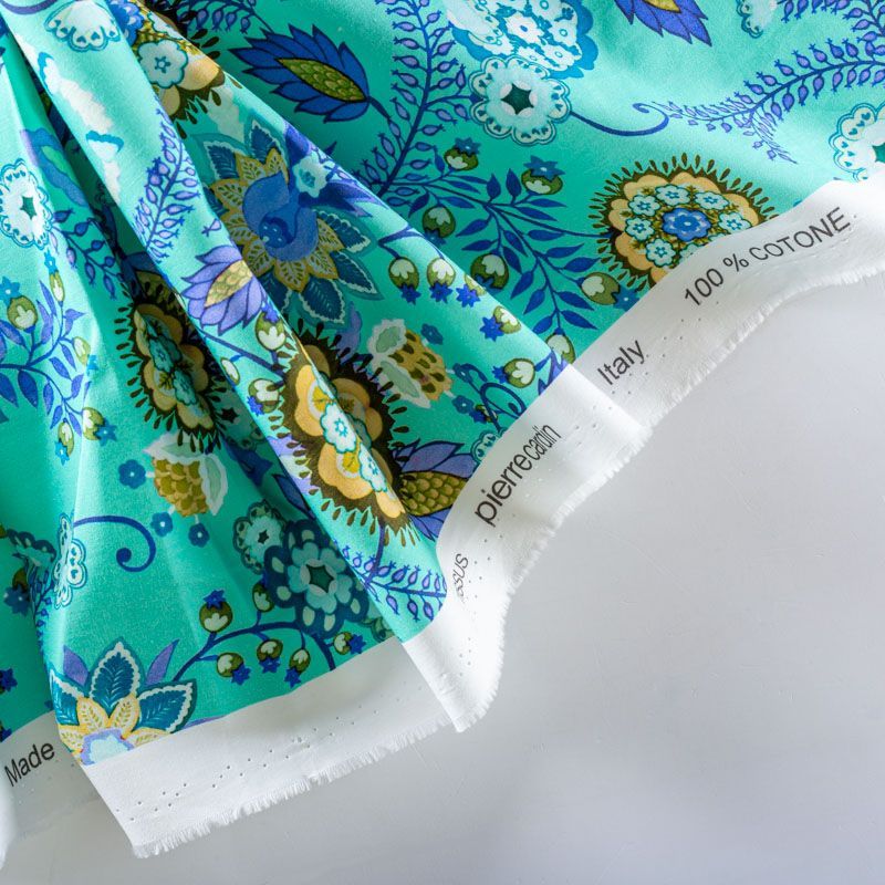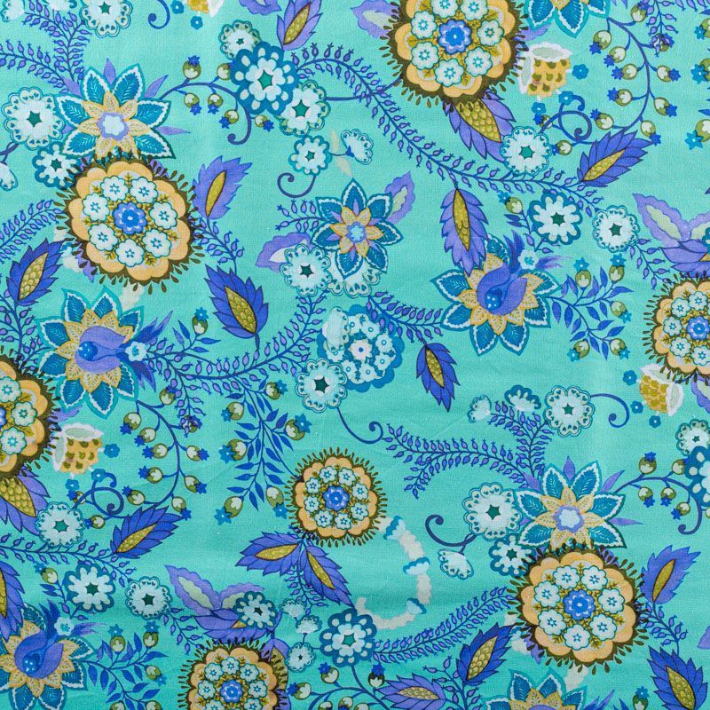 Плательно-рубашечный натуральный хлопок от французского дизайнера с цветочным орнаментом в сине-фиолетовых тонах на "вкусном" мятном фоне. Ткань имеет плотное переплетение, матовую гладкую поверхность, хорошо держит форму, не прозрачная. Подойдет для пошива рубашек, платья-рубашки, юбки, сарафана, туники, домашней одежды.