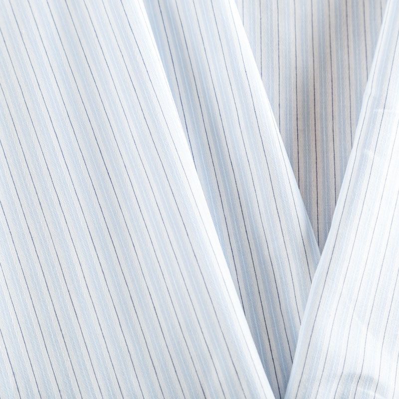 Плательно-рубашечный хлопок в белого цвета освежает бледно-голубая полоска. Ткань мягкая, лёгкая, непрозрачная, пластичная и приятная к телу, хорошо драпируется, имеет гладкую матовую поверхность и сатиновое плетение. Прекрасно подойдет как для пошива платья-рубашки, сарафана, платьев различных фасонов, туники, топа, летнего костюма, комбинезона, мужкой и детской одежды.