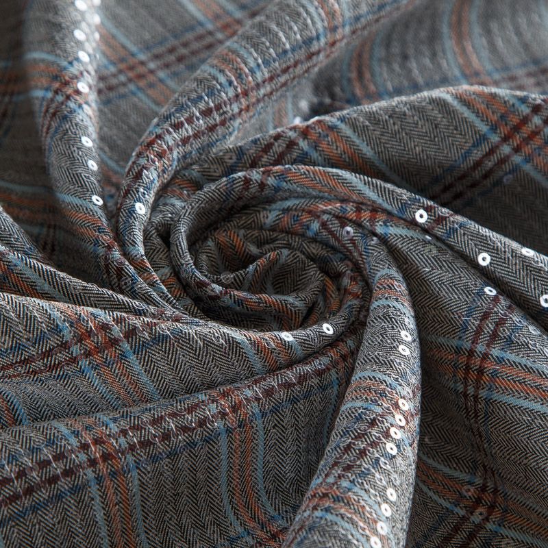 Хлопок с пайетками 063-16329 серый принтованный в Норильске