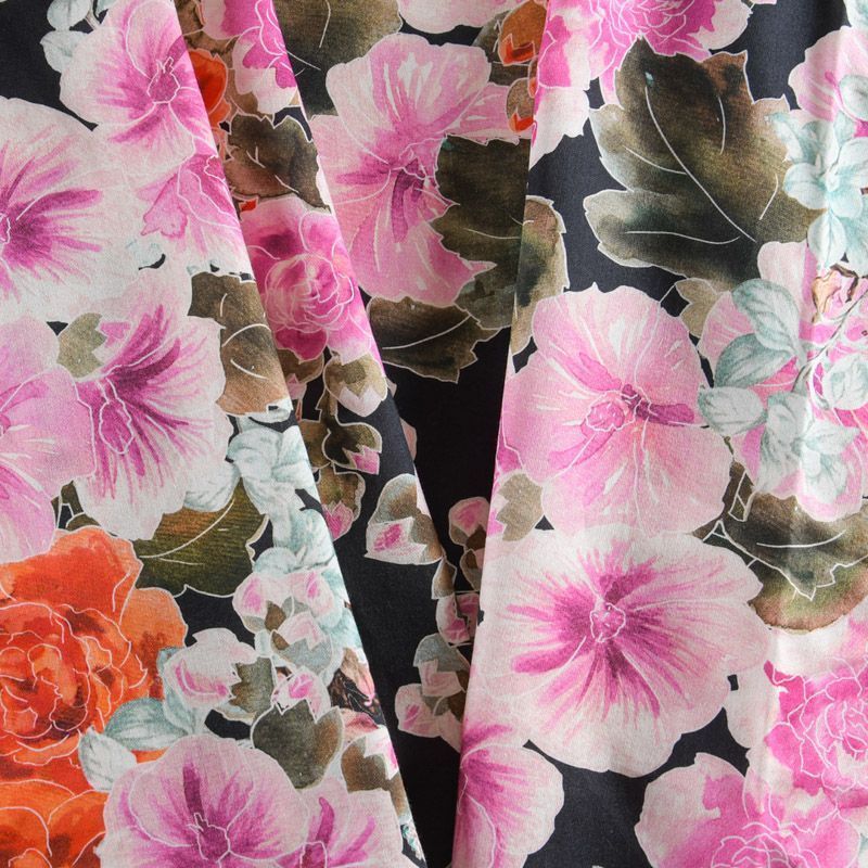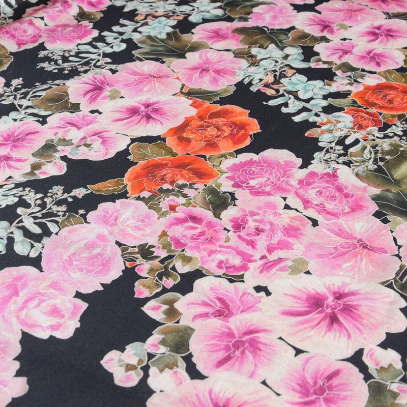 Хлопок стрейч 063-12101 черный принтованный в Норильске