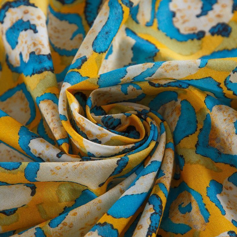 Хлопок стрейч 063-17517 желтый принтованный в Норильске