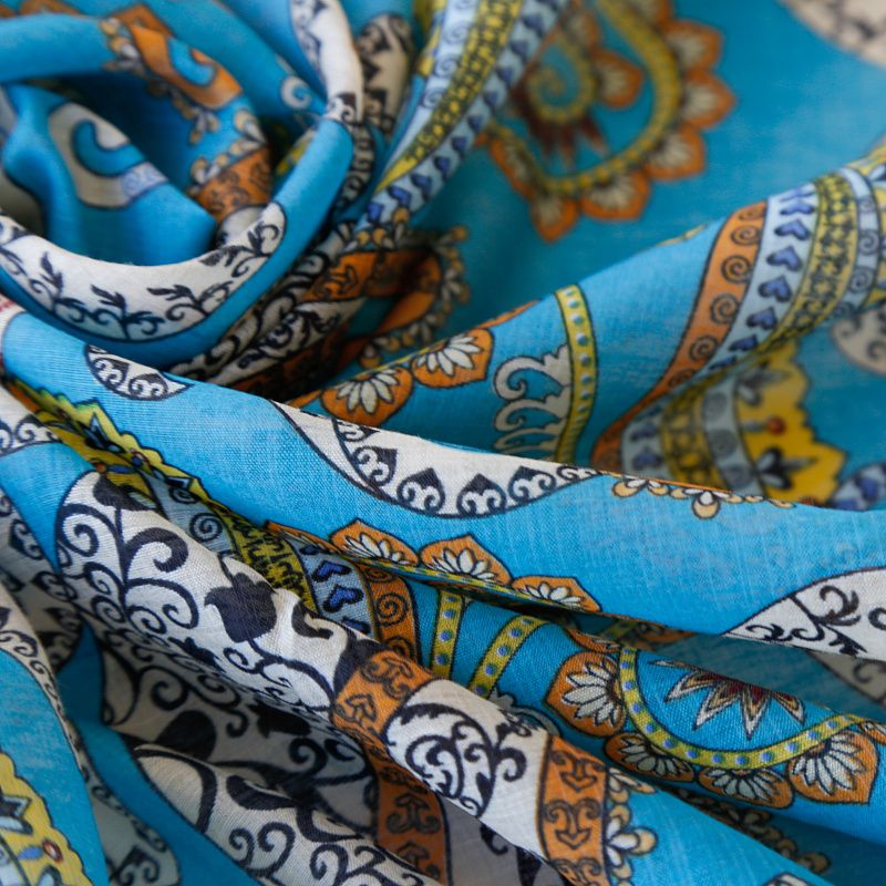 Хлопок-вуаль К33-143 бирюзовый принтованный