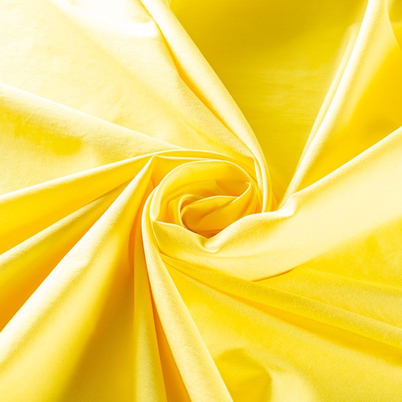 Итальянский коттон средней плотности лимонно-желтого оттенка, мягкий, приятный на ощупь, эластичный, держит форму, смотрится красиво. Подойдет для пошива костюма, жакета, юбки, платья и других изделий на теплый и прохладный сезоны.