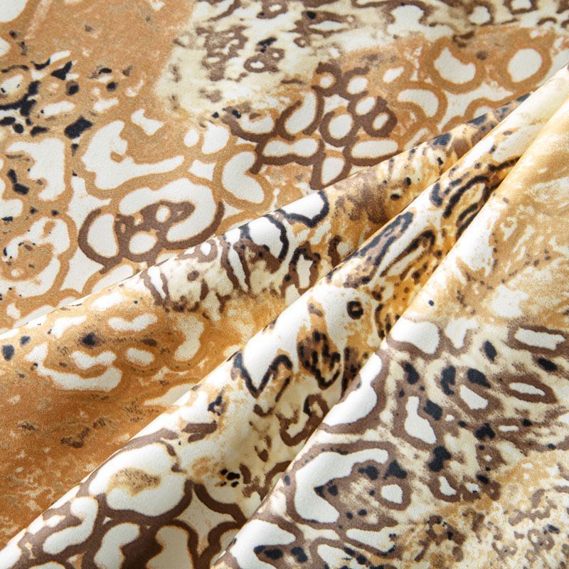 Ткань средней плотности, мягкая, приятная на ощупь, эластичная, держит форму, смотрится красиво, женственно. Подойдет для пошива костюма жакета, юбки, платья и других изделий, на теплый и прохладный сезоны.