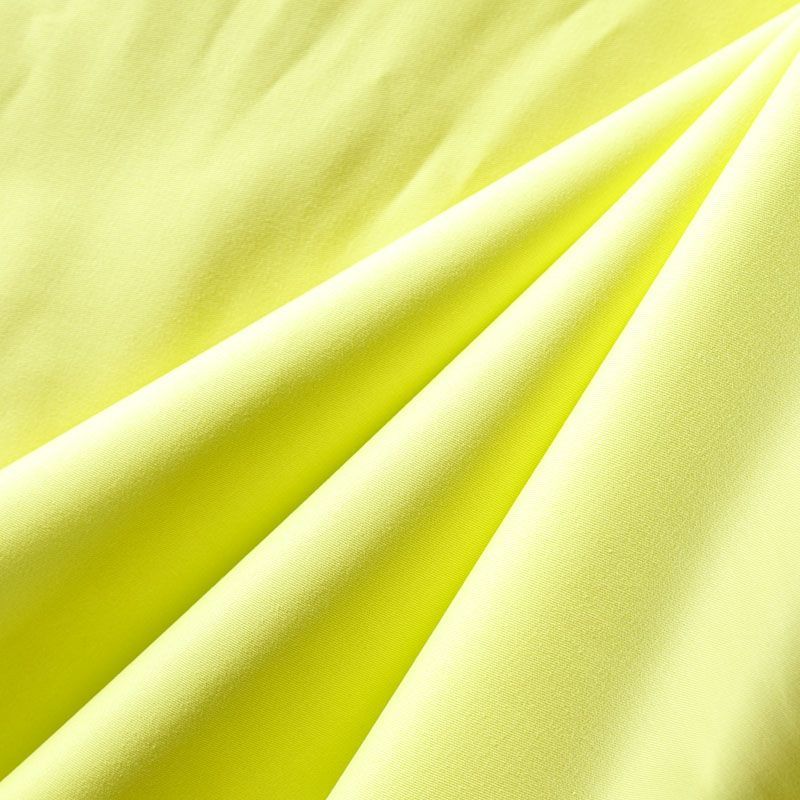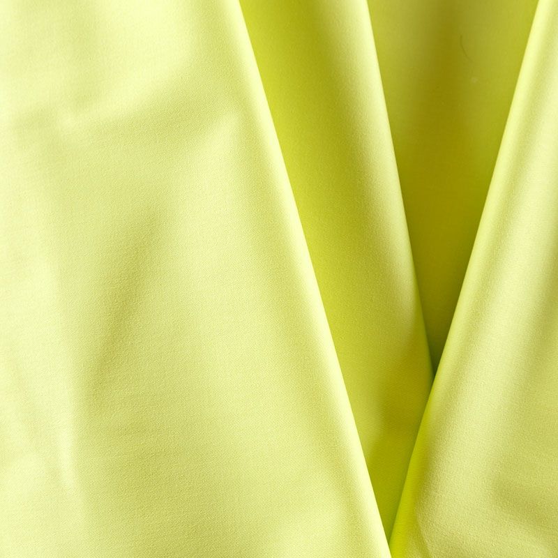 Итальянская хлопковая ткань средней плотности в ярком и сложном желто-зеленом оттенке. Материал очень приятный на ощупь, эластичный, не жесткий, но держит форму. Подойдет для пошива куртки, парки, тренча, легкого жакета, юбки, джоггеров, шорт, платья-сафари и других изделий.