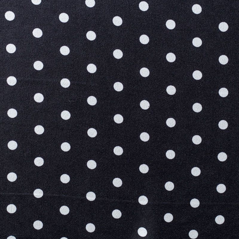 Плательный креп с принтом в горох. Ткань средней плотности, не толстая, пластичная, поверхность полотна матовая, с характерной мелкозернистой фактурой, прочная, хорошо драпирующаяся. Превосходно подойдет для пошива стильного костюма, юбки, платья, комбинезона, топа, брюк.