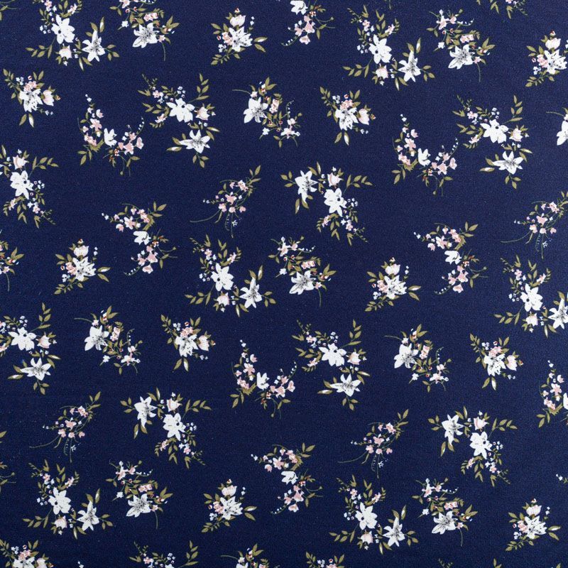 Плательный креп с мелким цветочным принтом. Ткань средней плотности, не толстая, пластичная, поверхность полотна матовая, с характерной мелкозернистой фактурой, прочная, практически не мнется, хорошо драпируется. Превосходно подойдет для пошива стильного костюма, юбки, платья, комбинезона, топа, брюк.