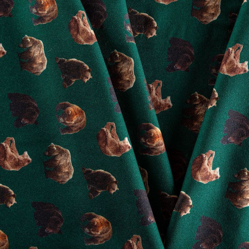 Креп 026-03081 темно-изумрудный принтованный