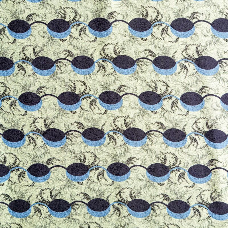 Итальянский вискозный креп плательной плотности светло-серого цвета с абстрактно-геометрическим принтом в сине-голубых оттенках. Поверхность матовая и фактурная, ткань малосминаемая, красиво драпируется, струится и дает объемную складку, не просвечивает.Идеально подойдет для шикарного платья, блузы, юбки, комбинезона, брюк свободного кроя.