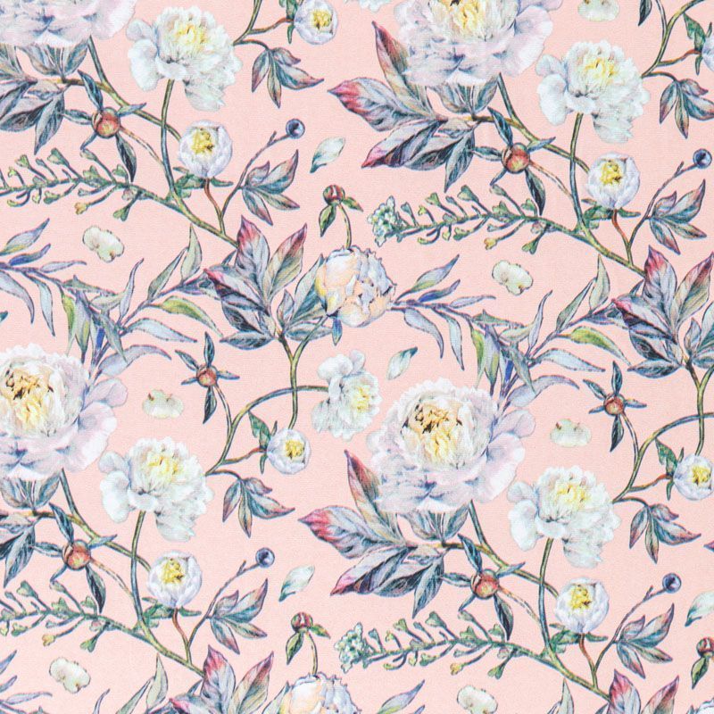 Ткань плательной плотности с флористическим принтом в приглущенных пастельных оттенках. Материал почти мнется и немного прозрачен на свету, имеет креповую фактуру, легкий, хорошо тянется, драпируется струящимися складками, приятный и комфортный в носке. Идеально подходит для пошива платьев, юбок, блуз, комбинезонов.