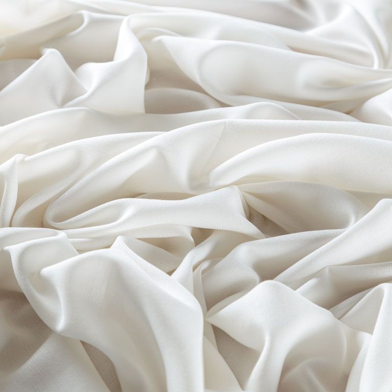 Итальянский вискозный плательный креп с эластаном в молочном оттенке. Ткань тонкая, легкая, отлично драпируется, идеальна для летнего сарафана, платья, туники, блузки, юбки, ниспадающих, свободных, воланящих, летящих, многослойных фасонов, а также в качестве подклада под кружево.