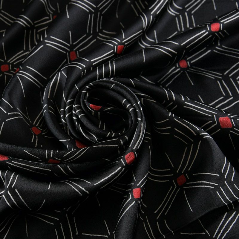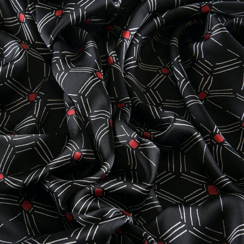 Креп-атлас 001-11922 черный принтованный