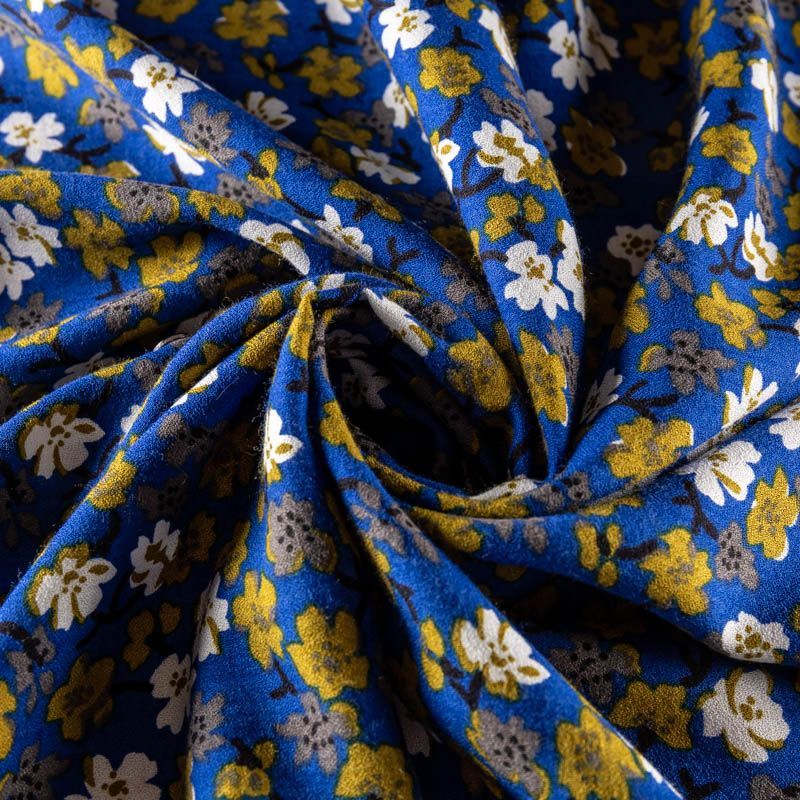 Плательно-блузочная ткань из вискозы с креповым плетением. Ткань средней плотности, имеет зернистую фактуру и матовую поверхность, практически не просвечивает, пластичная, хорошо драпируется мягкими складками, струится. Подходит для пошива платья и сарафана, юбки, блузки, туники, топа, комбинезона.