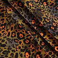 Итальянская натуральная вискозная ткань оливкового оттенка с анималистическим принтом. Ткань легкая, хорошо тянется, драпируется струящимися складками, приятная и комфортная в носке. Материал слегка мнется, имеет креповую фактуру. Идеально подходит для пошива  платьев, юбок, блуз, комбинезонов, костюмов, туник, кардиганов.