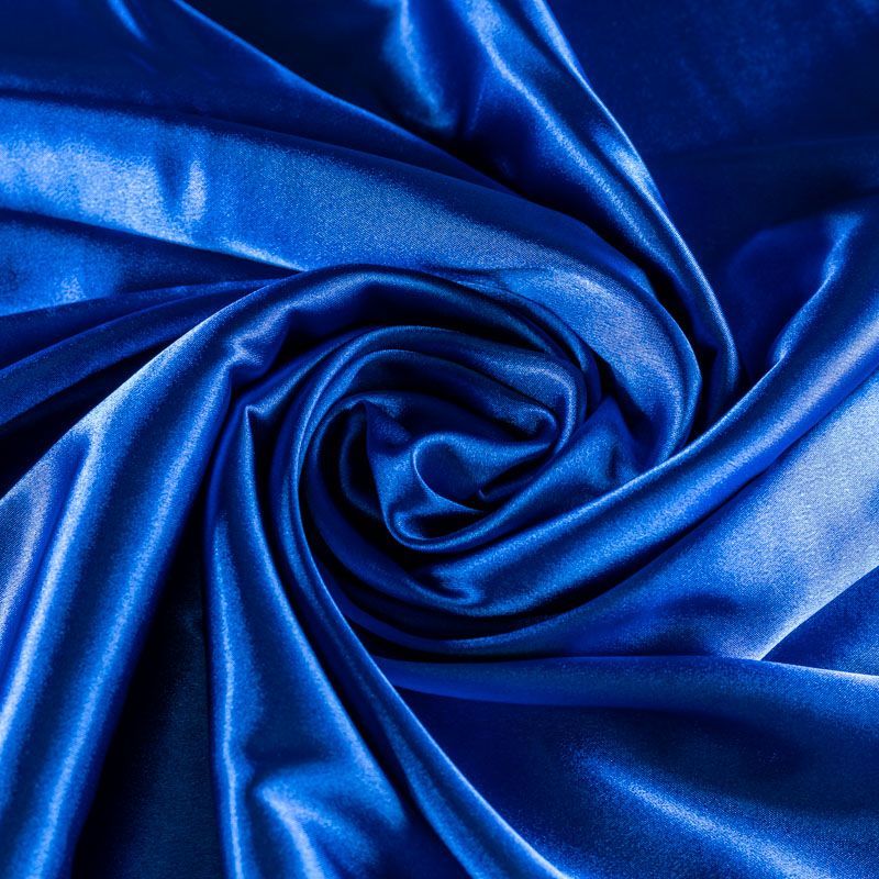Ткань имеет сатиновую волнистую структуру с благородным блеском на лицевой стороне и матовую поверхность на оборотной стороне. Ткань средней плотности, шелковистая, очень благородно блестит, играет, струится. Драпируется в красивые фалды, тянется за счет эластана в составе, не просвечивает. Подойдет для пошива платьев, блузок, юбок, легких комбинезонов, костюмов.