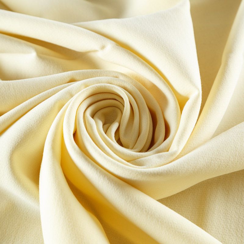 Итальянский костюмно-плательный шерстяной креп в сливочном оттенке. Ткань упругая, пластичная, с добавлением эластана, хорошо держит форму, практически не мнется. Подойдет для пошива платья, жакета, юбки, свободных брюк, топа, лонгслива, комбинезона.