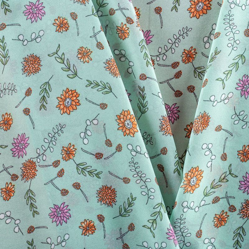 Креп-шифон 027-01285 мятно-зеленый принтованный в Норильске