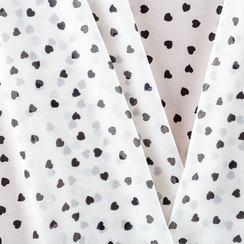 Легкий, воздушный, мягкий и нежный креп-шифон, прекрасно драпируется, тянется, приятен к телу, полупрозрачный, может потребоваться подклад. Поверхность матовая, без блеска, фактурная. Идеален для нежных платьев летящих силуэтов, топов, туник, блузок, юбок с роскошными драпировками и воланами.
