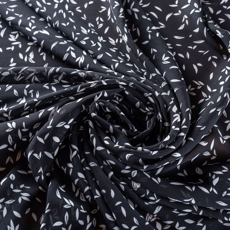Креп-шифон 027-01445 черный принтованный