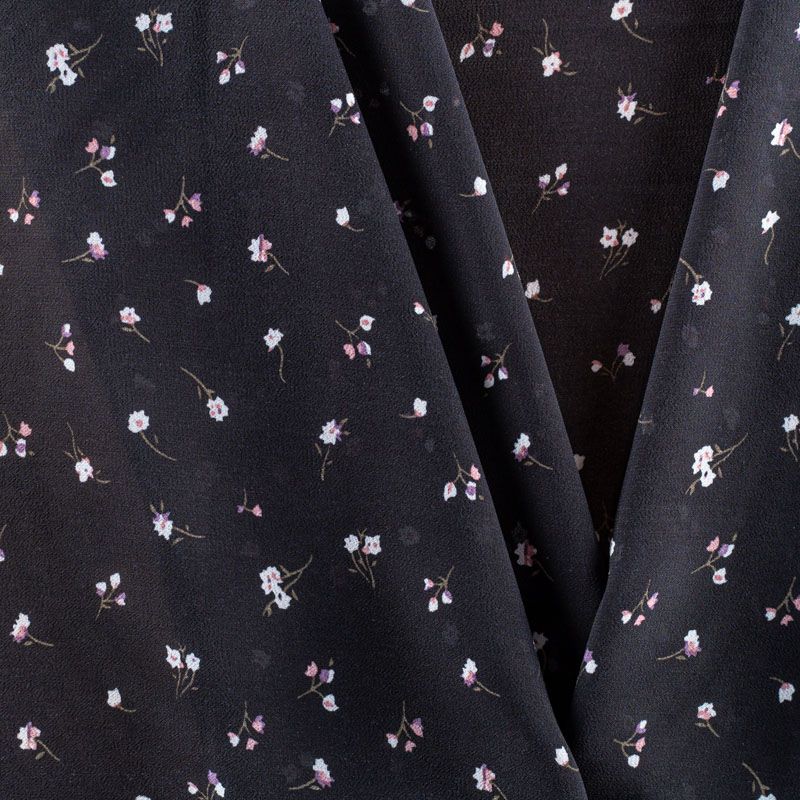 Креп-шифон 027-01447 черный принтованный