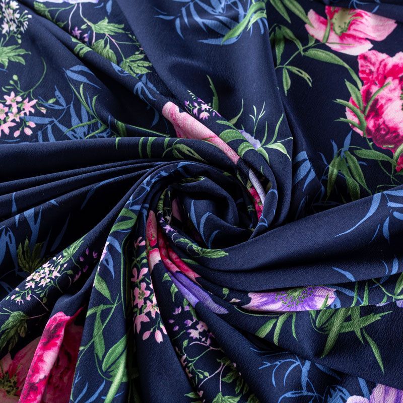Креп-шифон 027-01569 темно-синий принтованный в Норильске