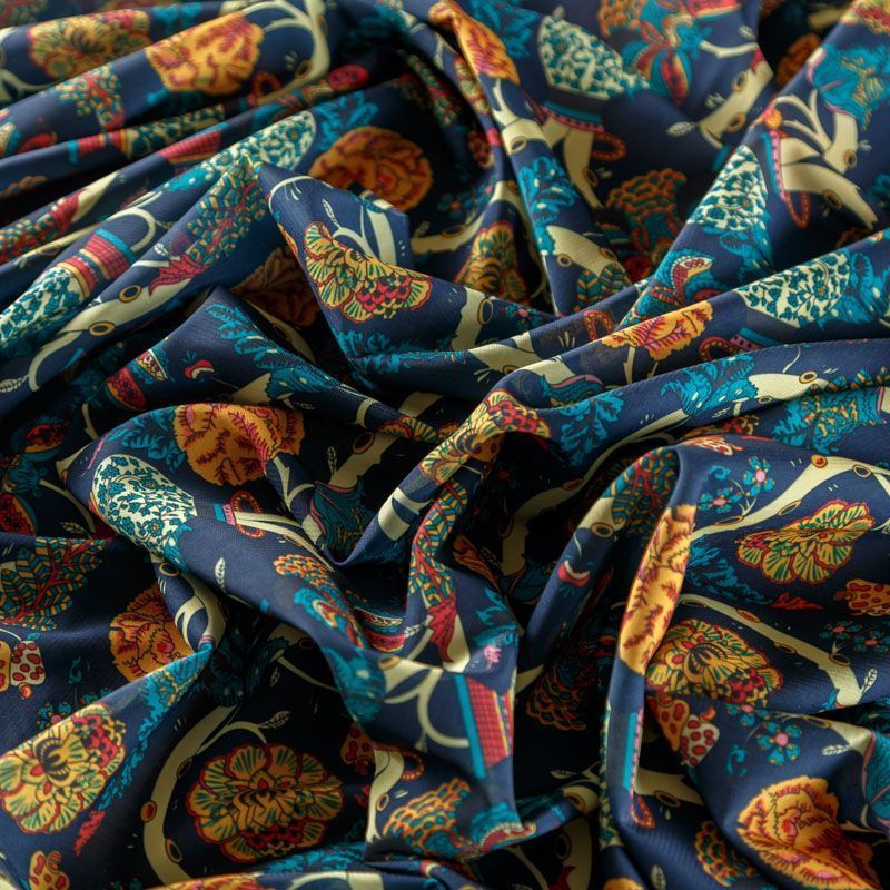 Креп-шифон легкий, воздушный, мягкий и нежный, прекрасно драпируется, тянется, приятен к телу, полупрозрачный, может потребоваться подклад. Поверхность шероховатая, матовая, без блеска. Тянется за счет эластана в составе. Идеален для нежных платьев летящих силуэтов, топов, туник, блузок, юбок с роскошными драпировками и воланами.