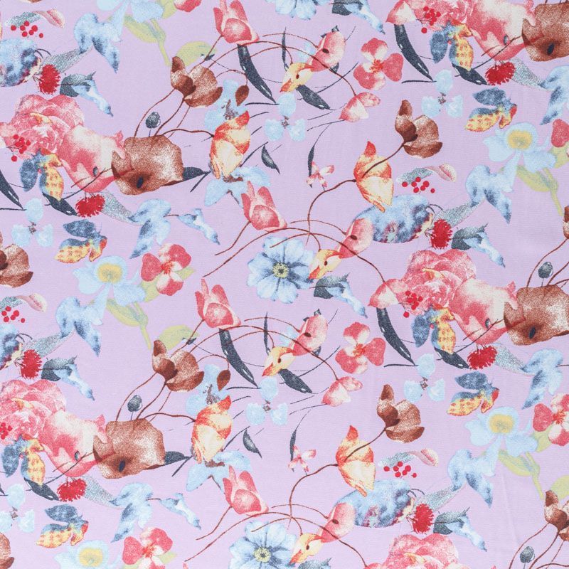 Креп-шифон 027-08367 разбеленный сиреневый принтованный