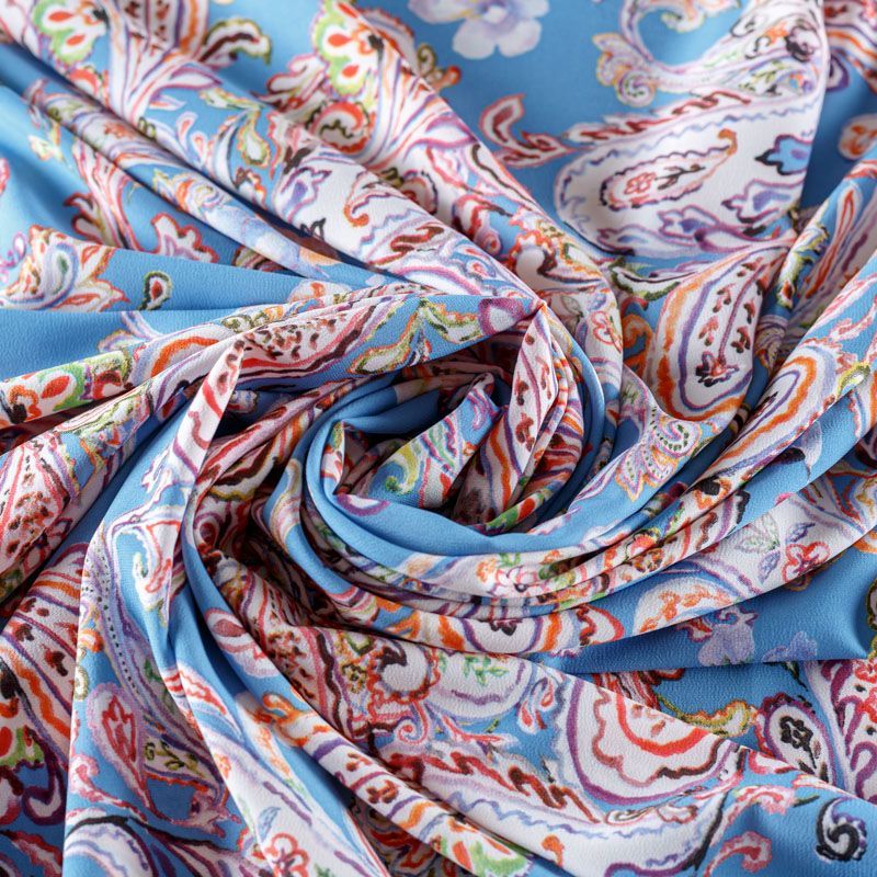 Креп-шифон 027-08417 голубой принтованный в Норильске