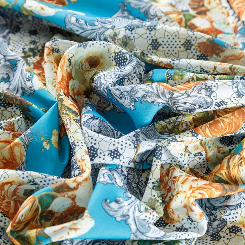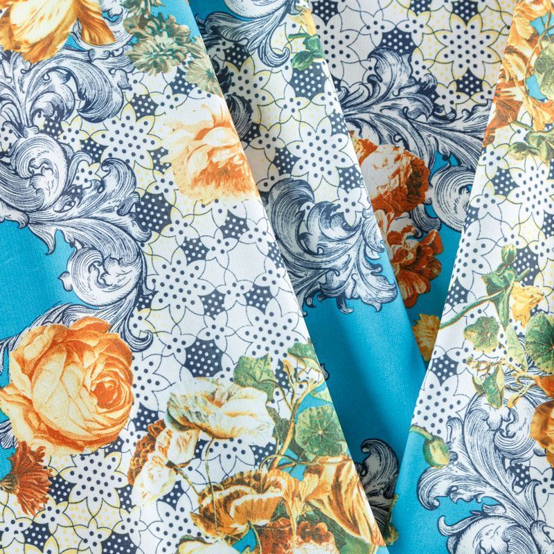 Креп-шифон К07-439 голубой принтованный в Норильске