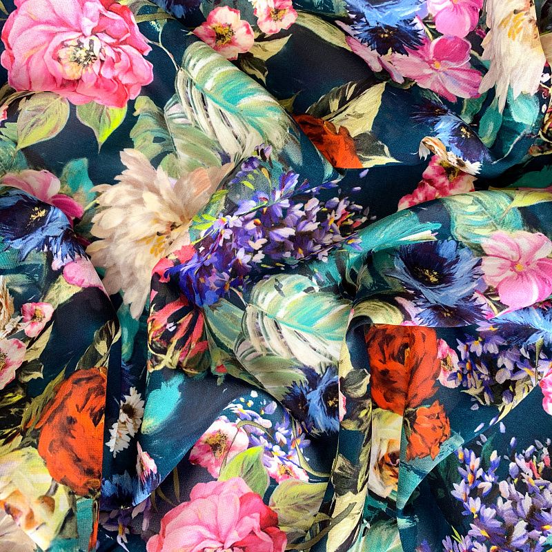 Креп-шифон натуральный К32-230 сине-зеленый принтованный в Норильске