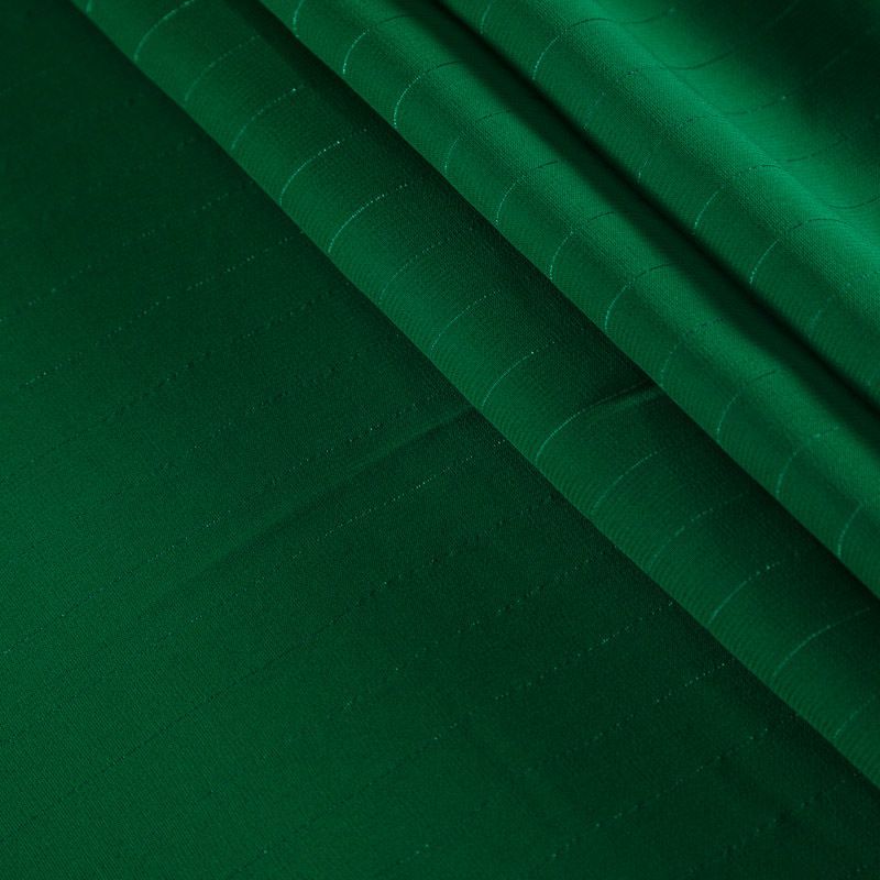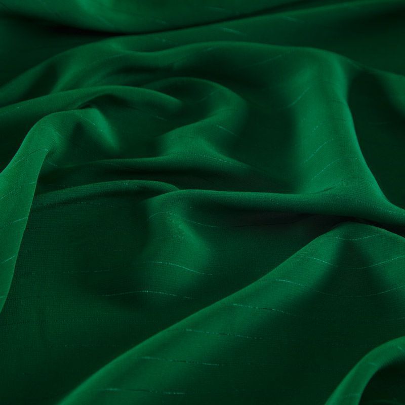 Итальянский смесовый креп-шифон Gucci в насыщенном зеленом оттенке с тонкими полосками люрекса. Полоски расположены горизонтально по ширине рулона.