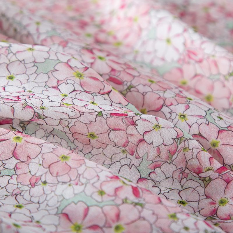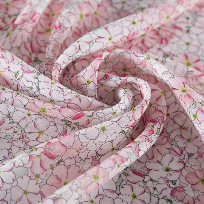 Креп-шифон шелковый 027-19849 нежно-розовый принтованный в Норильске