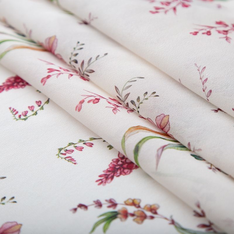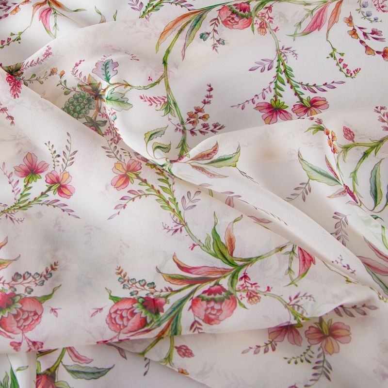 Креп-шифон шелковый 027-19851 молочный принтованный в Норильске