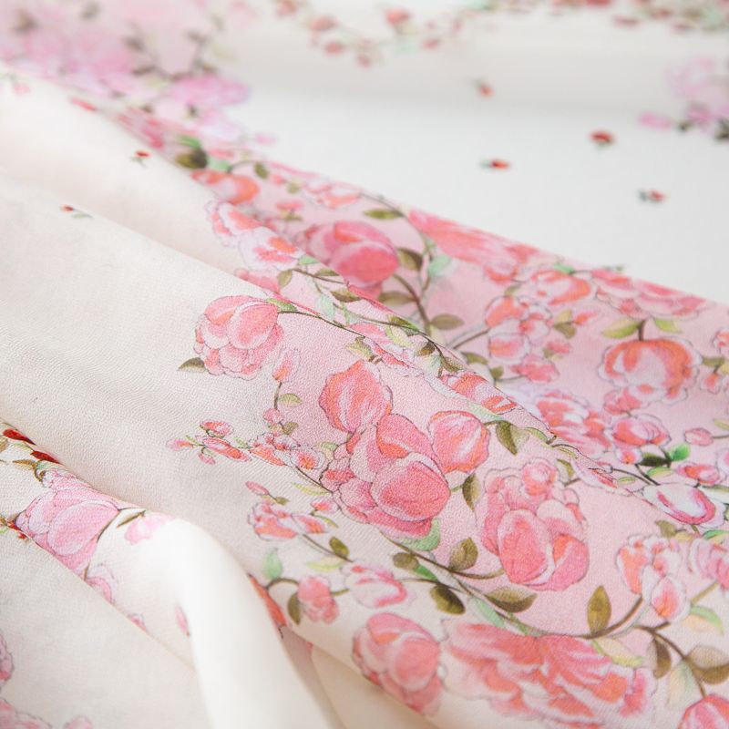 Креп-шифон шелковый 027-20215 молочный принтованный в Норильске