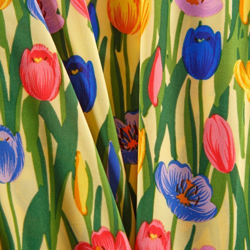 Креп-шифон стрейч 027-13092 желтый принтованный в Норильске