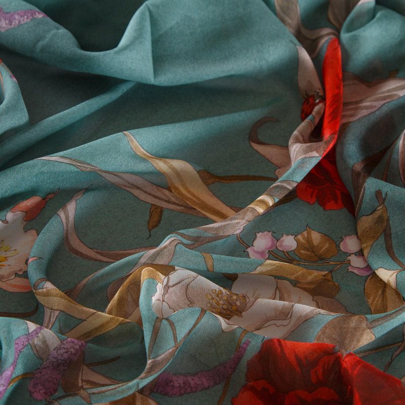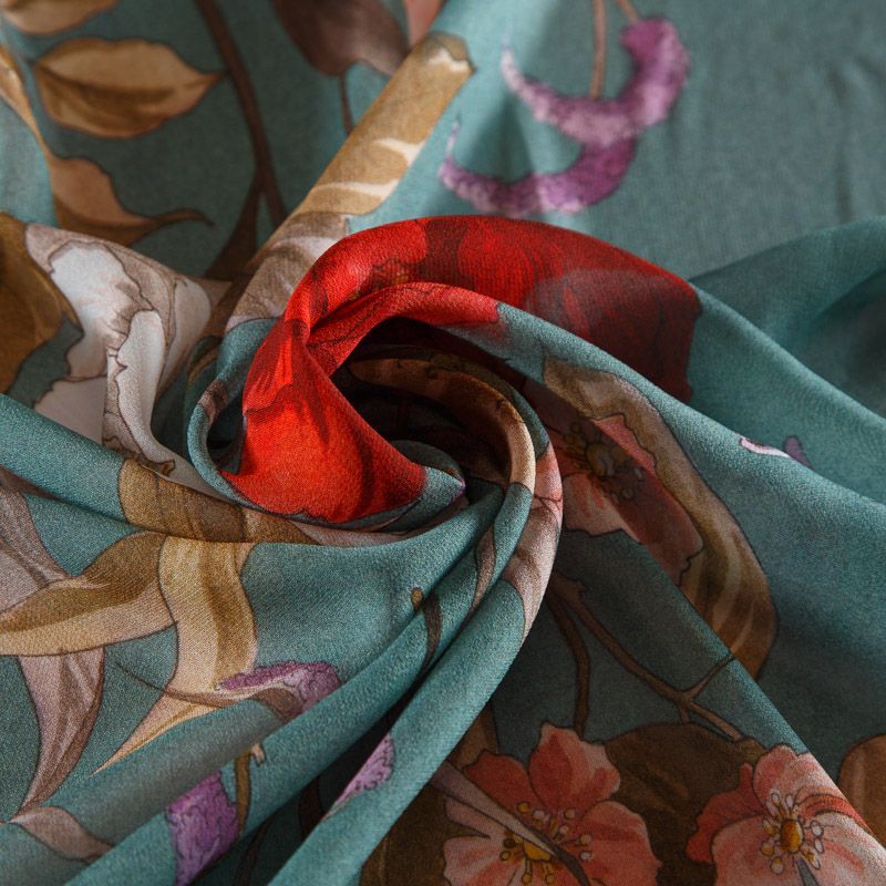 Креп-шифон вискозный 027-16407 серо-бирюзовый принтованный в Норильске