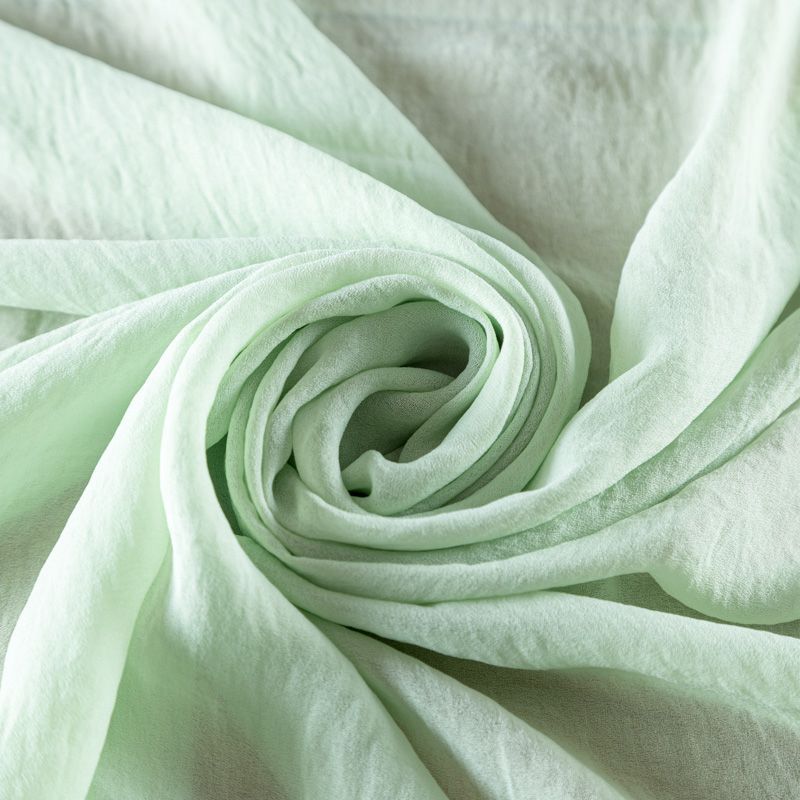 Легкий, воздушный, полупрозрачный, мягкий креп-шифон с эффектом "крэш", прекрасно драпируется, приятен к телу. Поверхность ткани матовая, без блеска, фактурная. Идеален для нежных платьев летящих силуэтов, топов, туник, блузок, юбок с роскошными драпировками и воланами.