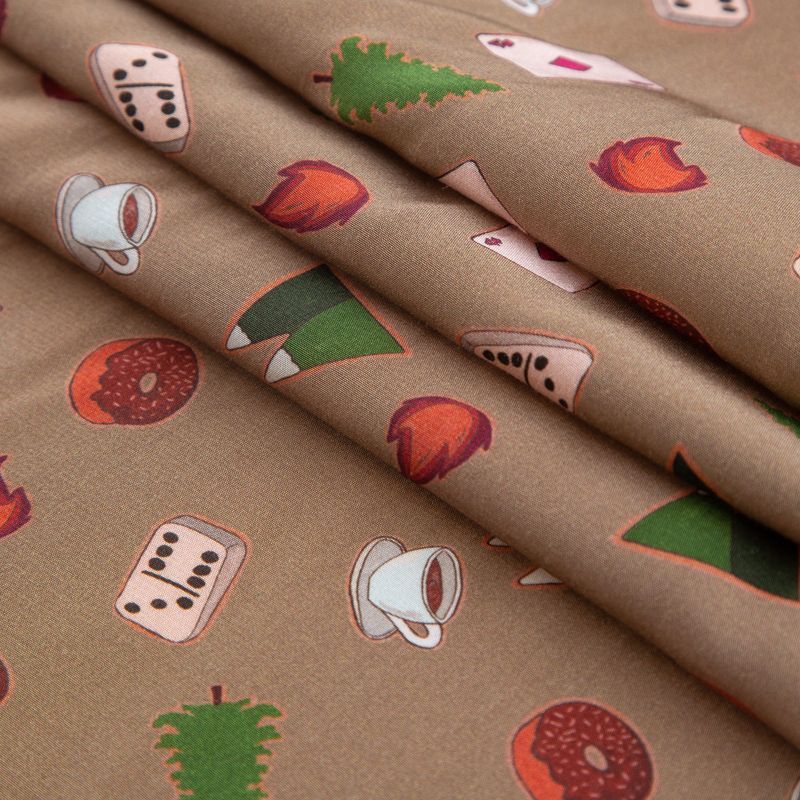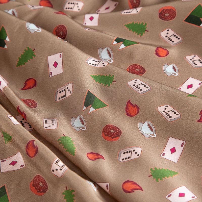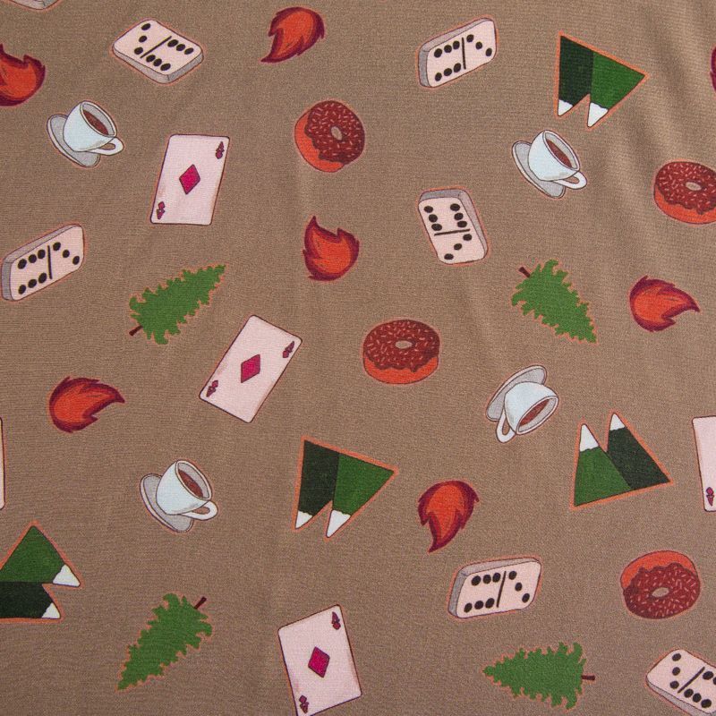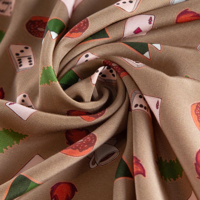 Креп вискозный 026-12177 серо-бежевый принтованный