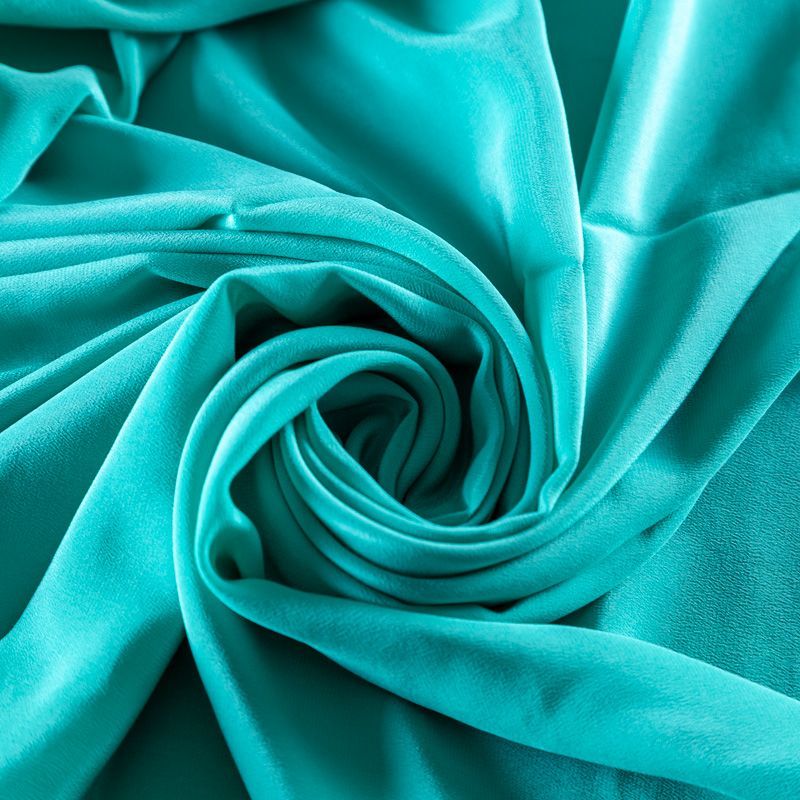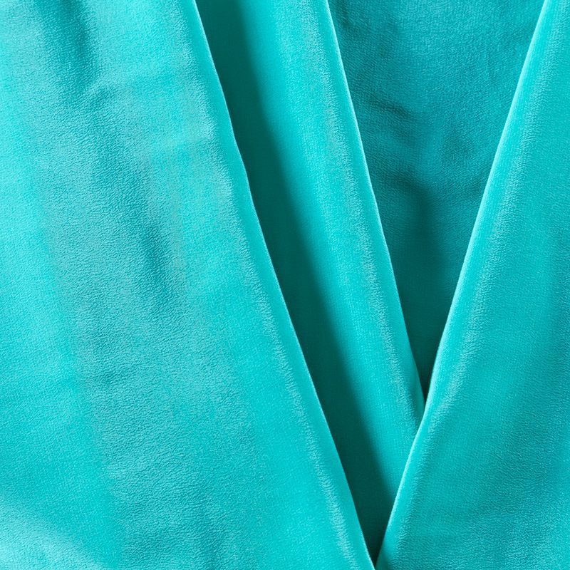 Итальянский натуральный шелковый крепдешин в бирюзовом оттенке, фактурный, легкий и струящийся, слегка просвечивает, отлично драпируется. Идеально подойдет для пошива платьев и сарафанов расклешенных моделей, с воланами, летящих юбок, топов, блузки, юбки, широких брюк, костюма в пижамном стиле.