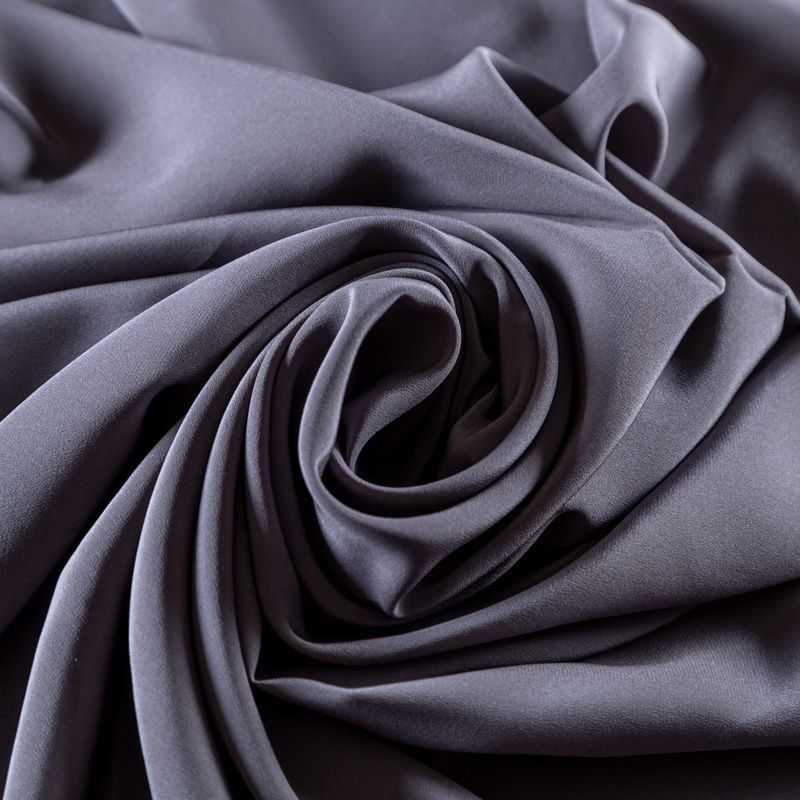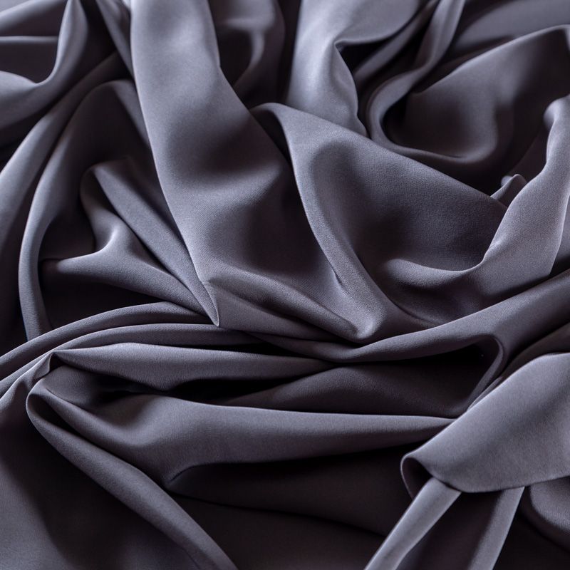 Итальянский натуральный шелковый крепдешин в сером оттенке, фактурный, легкий и струящийся, слегка просвечивает, отлично драпируется. Идеально подойдет для пошива платьев и сарафанов расклешенных моделей, с воланами, летящих юбок, топов, блузки, юбки, широких брюк, костюма в пижамном стиле.