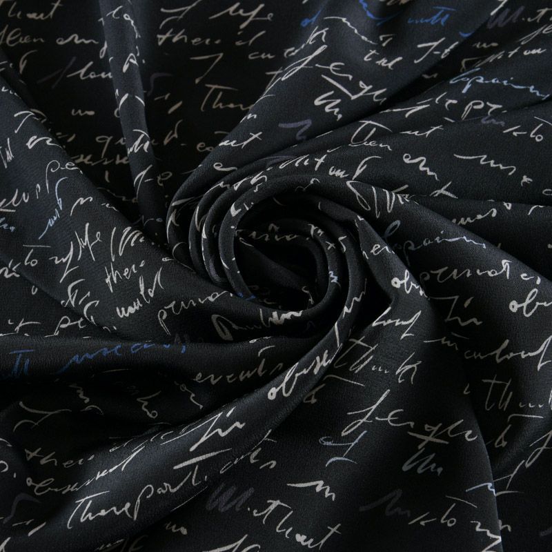 Крепдешин натуральный 028-11954 черный принтованный в Норильске