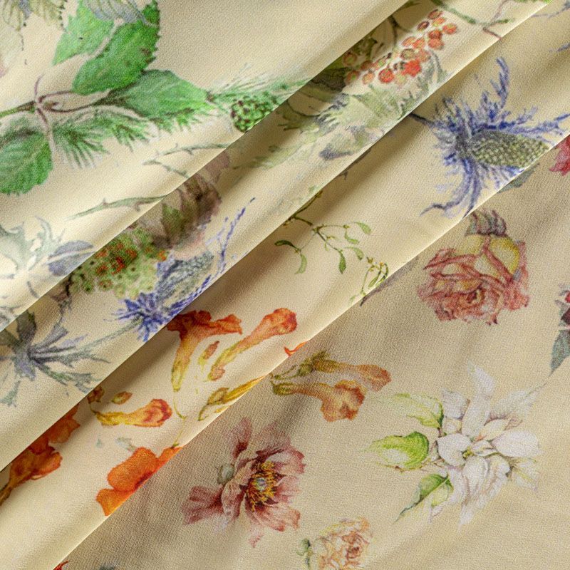 Крепдешин натуральный К01-0016 дынный принтованный в Норильске